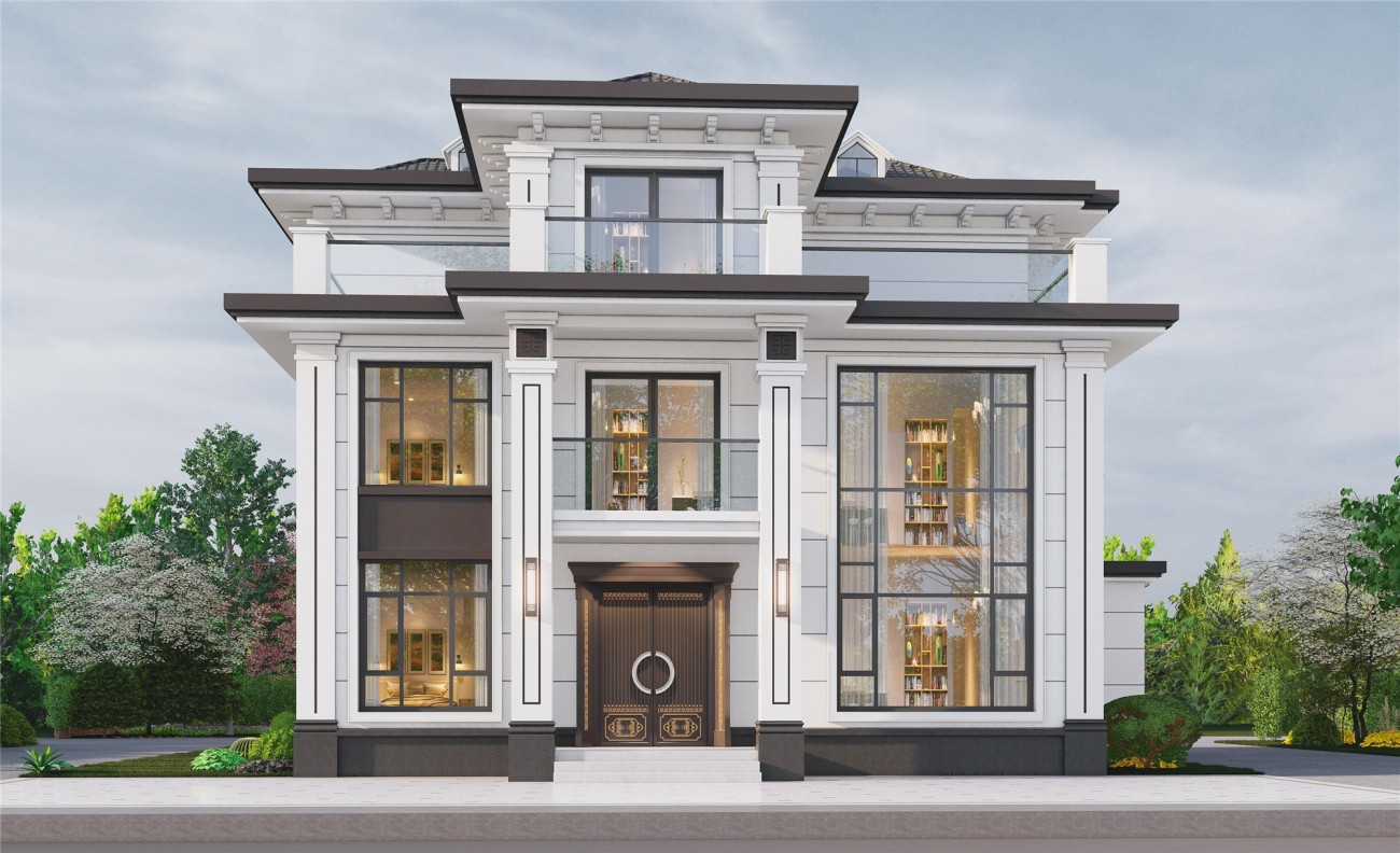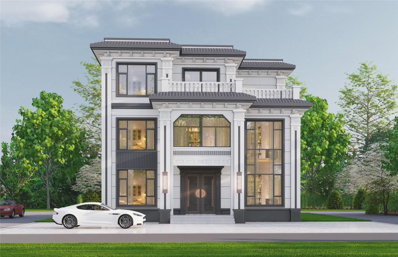 鹤壁12 新中式两层半(12.8x13.06米)-【易设计】