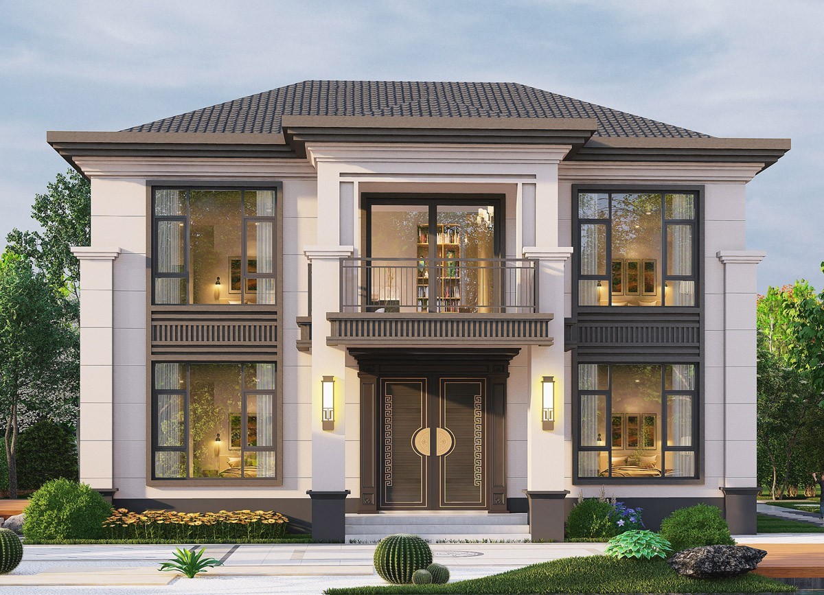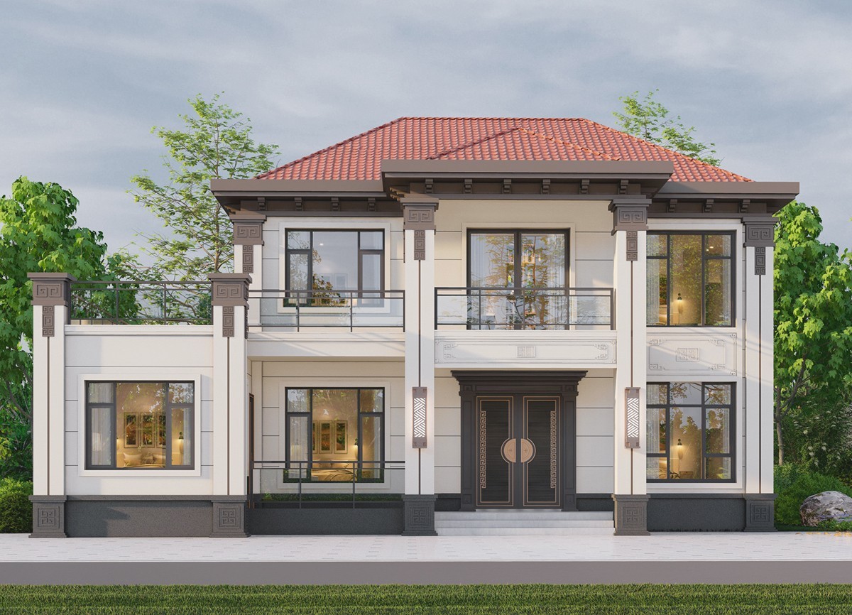 鹤壁005 两层新中式(11.36x11.76米)-【易设计】